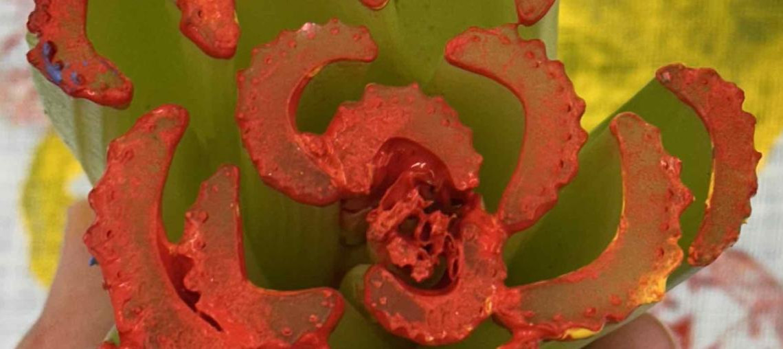 In questo laboratorio i bambini sperimentano la stampa diretta utilizzando scarti di frutta e verdura come matrici, svelandone le forme nascoste e il loro riutilizzo creativo. In collaborazione con la Fondazione Amici di Villa dei Cedri.