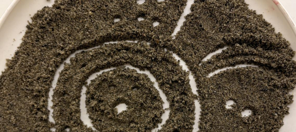 Un disegno fatto di punti, orme e impronte con i colori del deserto australiano.