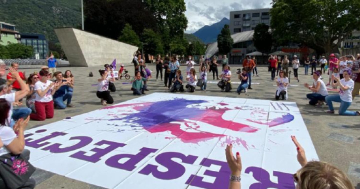 Il 14 giugno dalle 10 alle 12 in Piazza del Sole a Bellinzona, si è tenuta un’azione collettiva: donne come tante tessere di un mosaico vivo e plurale che sveleranno un messaggio forte e universale: RESPECT! Azione seguita da un omaggio al movimento BlackLivesMatter per denunciare l’uccisione di George Floyd da parte della polizia di Minneapolis.