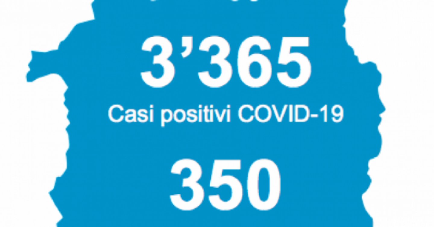 BELLINZONA – Il sito del Cantone ha appena fornito l’aggiornamento dei dati sull’emergenza Coronavirus. Alle 8:00 di oggi, giovedì 9 luglio, si contano 3'365 contagi dall’inizio dell’epidemia e 350 morti.