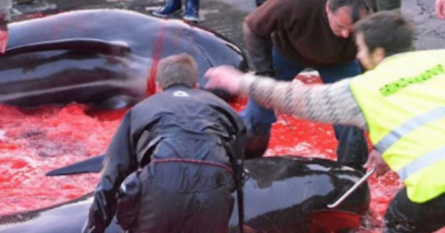 La Grindadrap consiste nel trascinare i mammiferi a riva e poi sgozzarli con dei coltelli