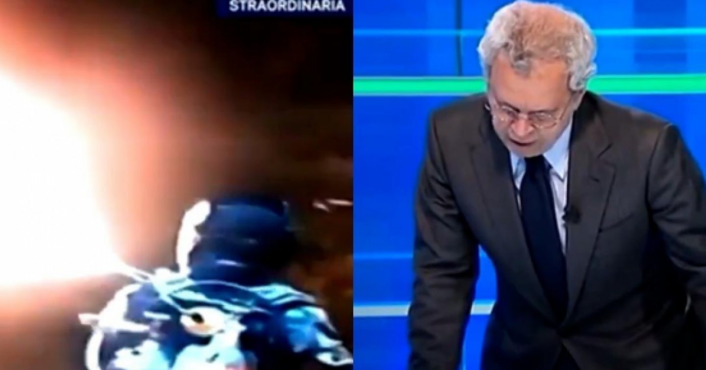 Quando poi legge chi ha mandato le immagini, ovvero il profilo Twitter “Live footage”, peraltro ironico, spiega che bisognerà verificare quanto visto.