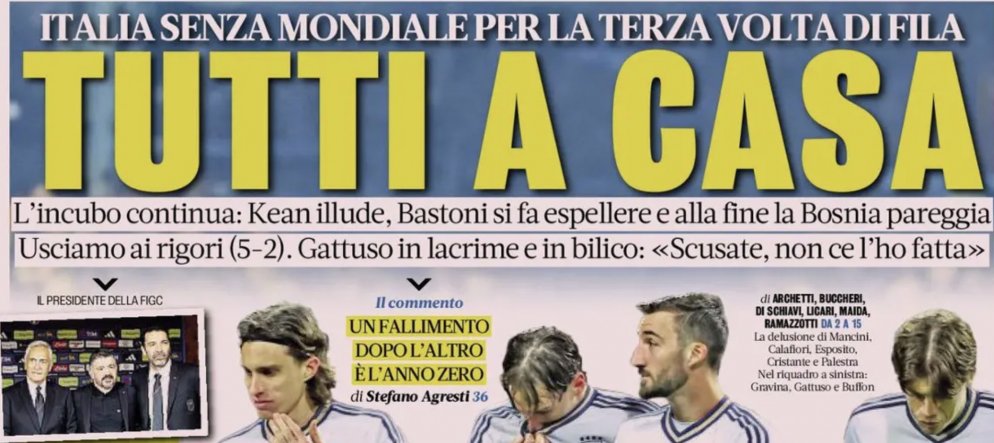 Apocalisse Italia. Nel girone della Svizzera ci sarà la Bosnia