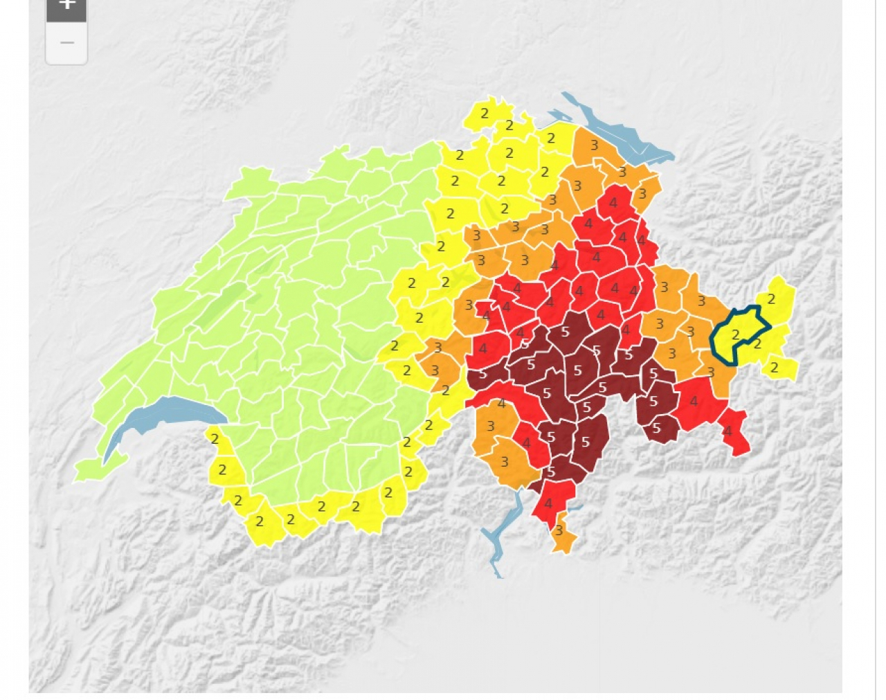Per parte del Ticino ora è addirittura allarme di grado 5, con previsto un accumulo da 150 a 300 millimetri. Restano con allerta di grado 3 solo Mendrisiotto, Locarnese e Alta Vallemaggia, mentre Luganese e Verzasca passano al 4