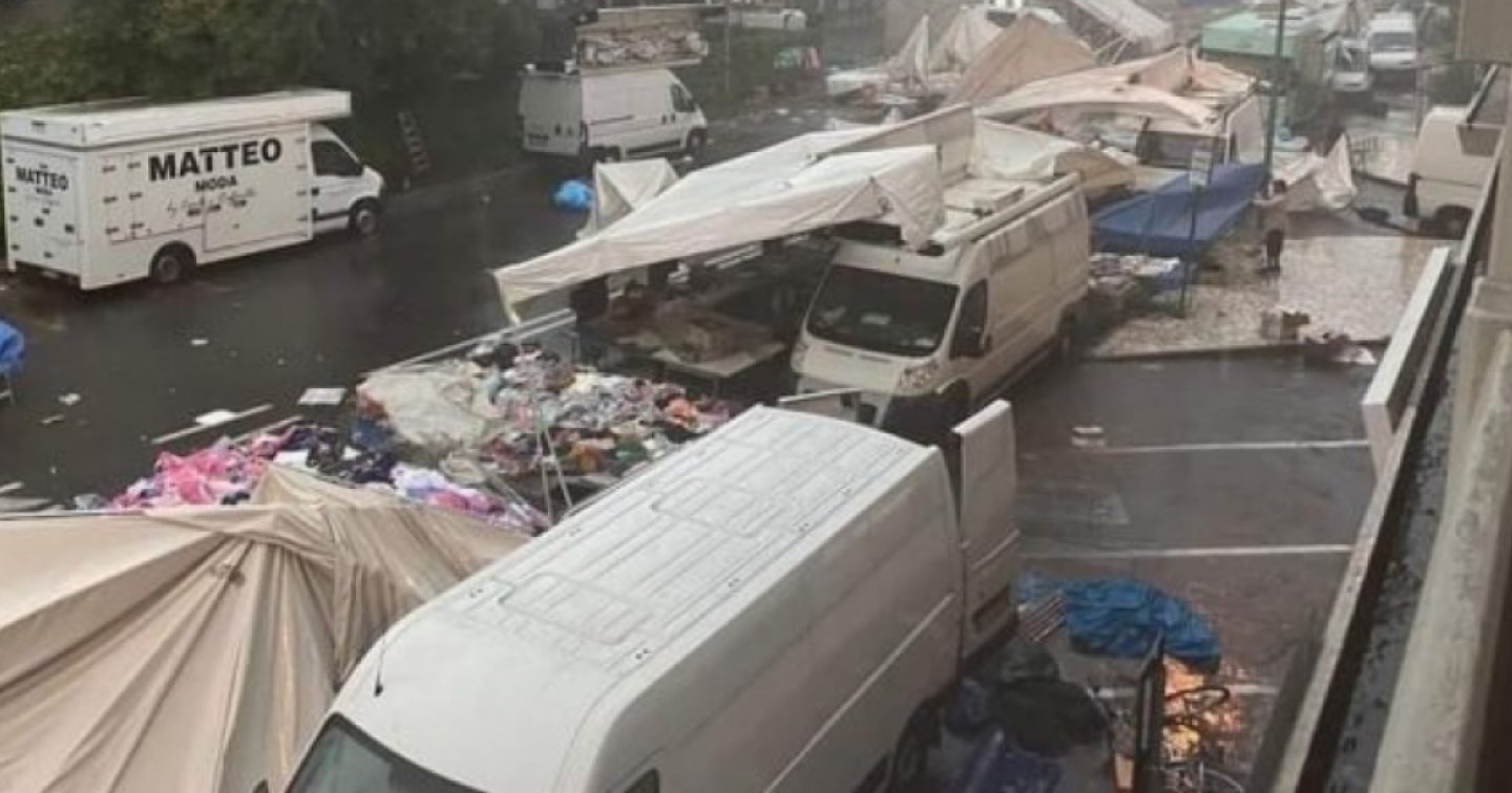 A Marina di Carrara la bomba d’acqua e le raffiche di vento a 140 km/h hanno sradicato alberi e allagato le strade. Travolto il mercato ambulante di Marina Carrara. Il vento ha rovesciato i banchi, strappato gli ombrelloni e fatto volare la merce. Distrutto anche il cinema all’aperto della cittadina.