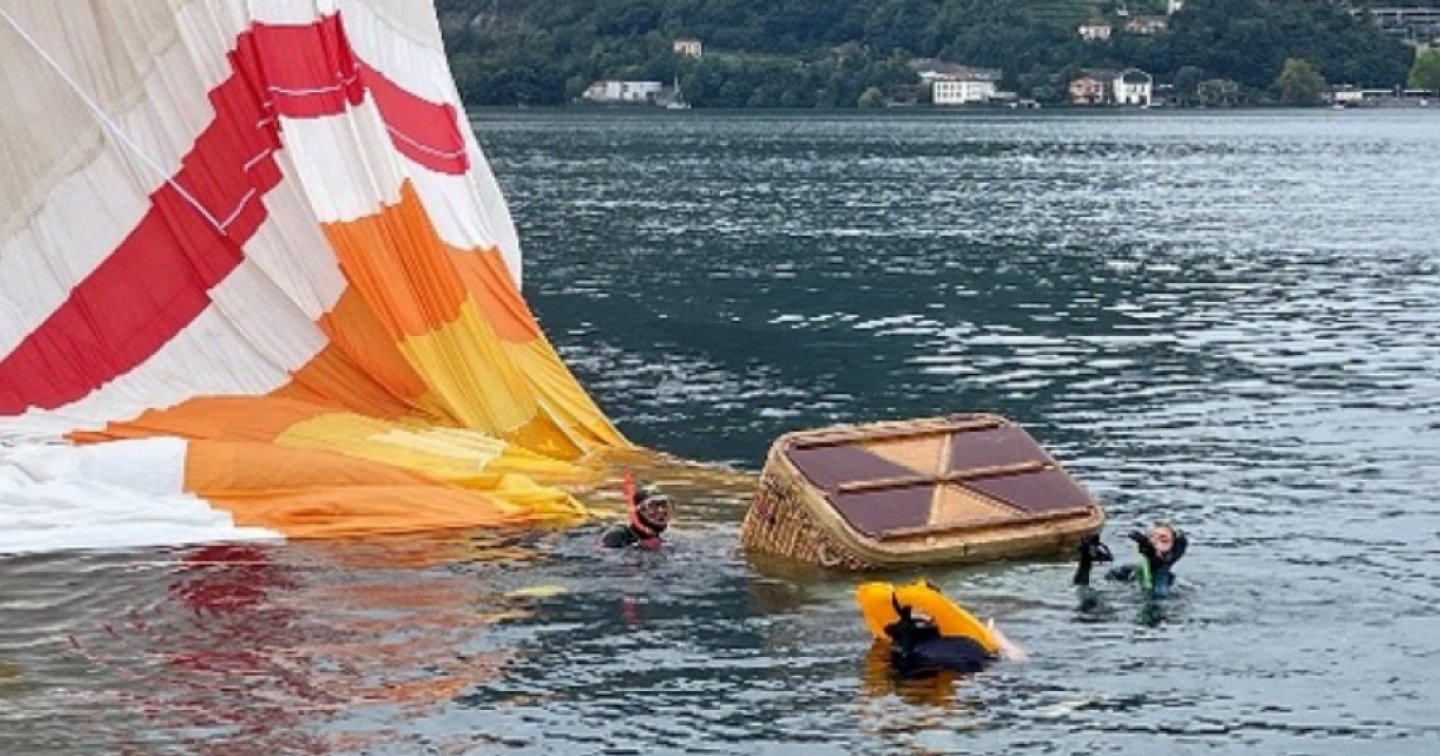 …Ma non sarà un incidente di volo. Si tratta di un’esercitazione condotta dal Gruppo Aerostatico in collaborazione con i Pompieri di Lugano e la Società Svizzera di Salvataggio