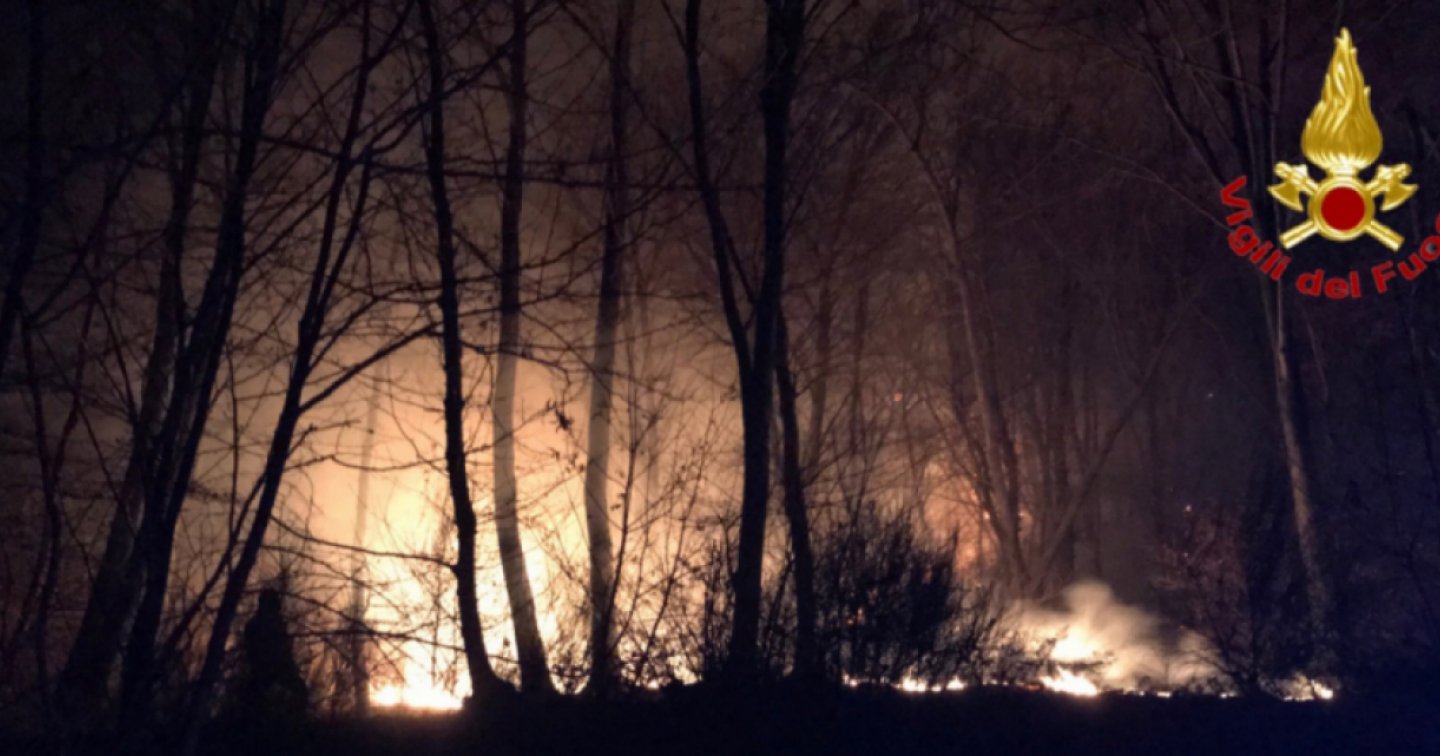 L’incendio, alimentato dal forte vento della scorsa notte, sta lambendo le abitazioni di Montegrino Valtravaglia