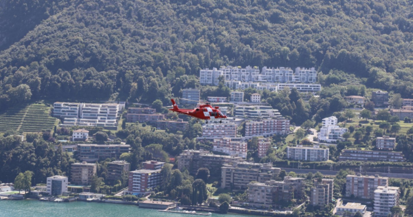 L’equipaggio dell’elicottero stazionato alla base Rega Locarno (Rega 6 in codice radio), dopo aver indossato il giubbotto di salvataggio apposito per la crew, è decollato in missione. Giunto di lì a poco sul luogo dell’intervento, ha compiuto un primo sorvolo sulle acque, individuando velocemente i due malcapitati, ancora aggrappati alla canoa.