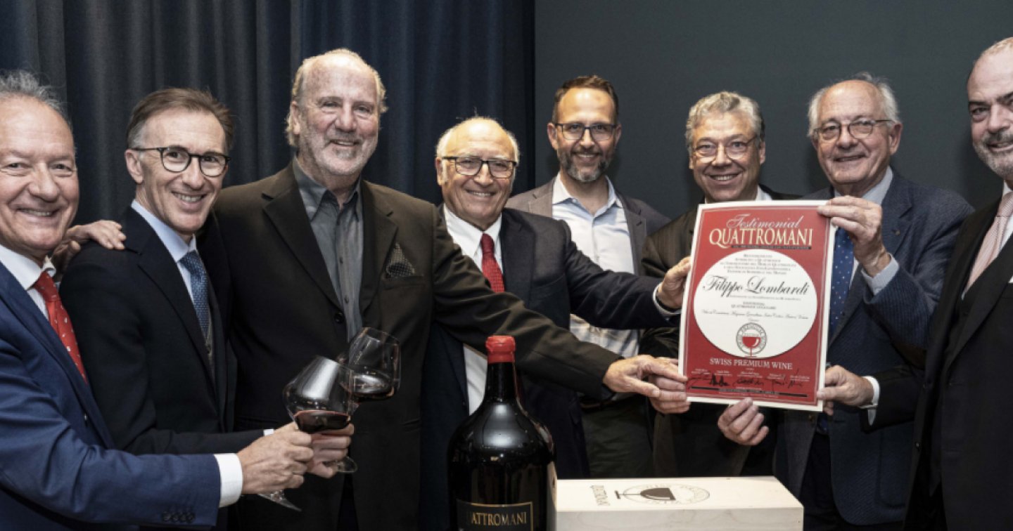 "Spettacolare accoglienza all’Hotel LuganoDante per Filippo Lombardi chiamato a stappare in anteprima svizzera la prima bottiglia dell’annata 2021 del merlot del Ticino Quattromani, in veste di “padrino” - si legge in una nota stampa -. Nel contempo il premiato è stato calorosamente festeggiato per il suo costante impegno come ambasciatore dei vini ticinesi durante tutta la sua brillante carriera giornalistica, politica e anche sportiva come presidente dell’Hockey Club Ambri-Piotta.