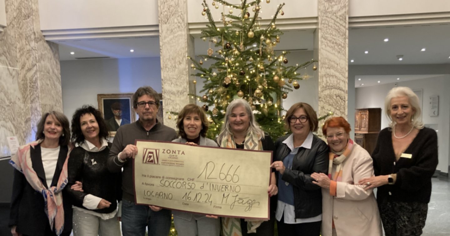 Nella giornata di ieri, lunedì 16 dicembre, è stato consegnato un assegno di 12.666 franchi, raccolti da Zonta Club Locarno grazie alla generosità dei partecipanti al gala, degli sponsor e delle donazioni. Il ricavato totale è stato di 19.000 franchi: un terzo - 6.333 franchi - saranno devoluti alla Fondazione Zonta International per sostenere progetti a favore di salute, sicurezza, educazione e leadership femminile.